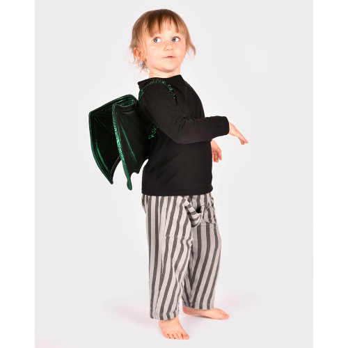 Qui hai un paio di ali di drago extra DIVERTENTI! La cosa migliore di loro è che aggiungono immediatamente un po’ di fantasia e giocosità in più, indipendentemente dal fatto che siano abbinati a una semplice maglietta bianca o a un completo da ballo in maschera. Le nostre ali di drago sono disponibili in una bella tonalità verde metallizzata, con punte dorate e spallacci elastici che le rendono adatte a bambini dai 2 ai 14 anni (circa).