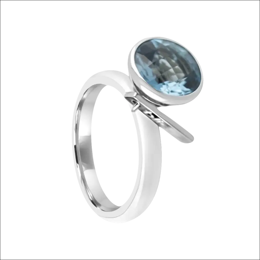 Anello Acciaio Donna Solitario Topazio Azzurro Bliss