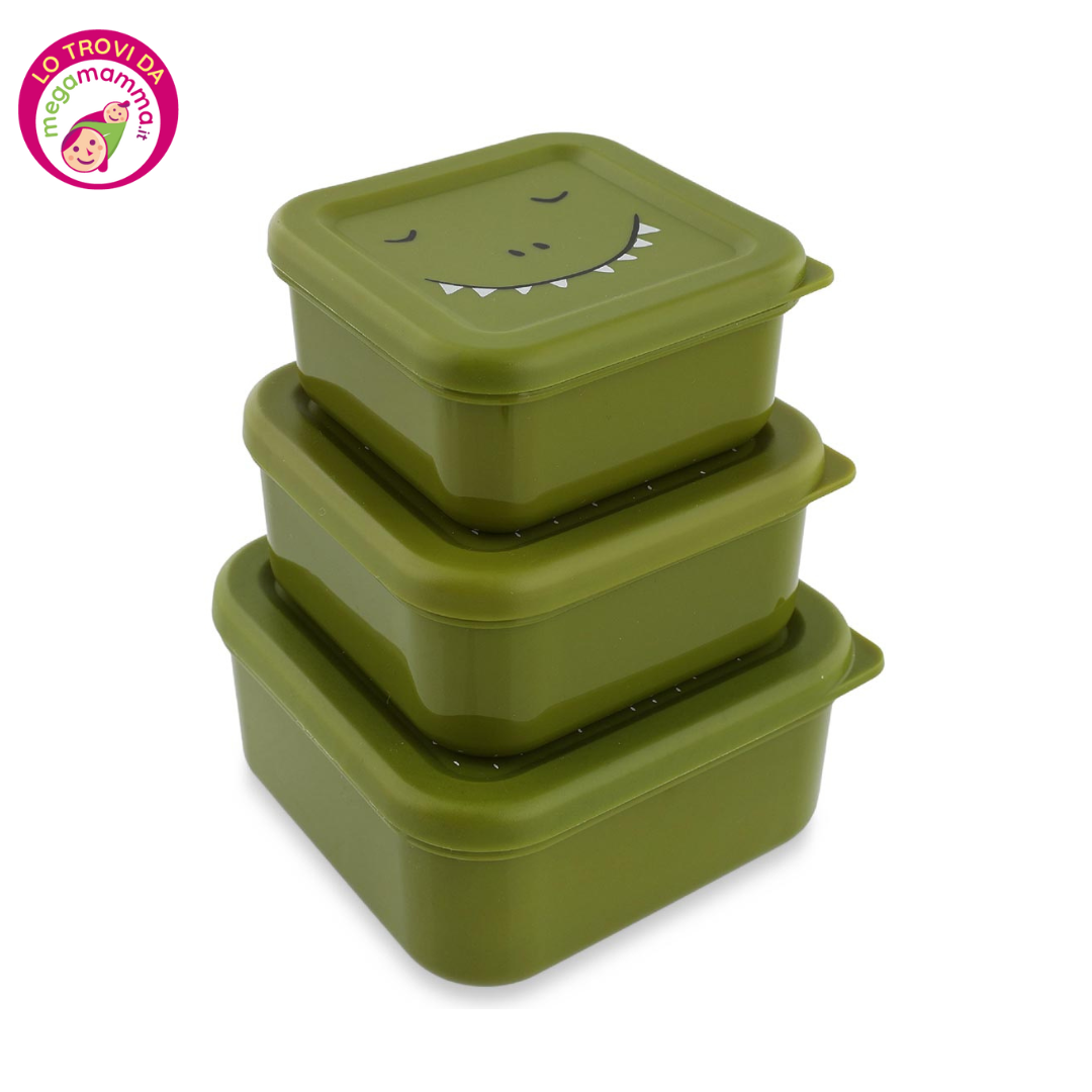 Condividi snack di ogni dimensione con il tuo animale preferito. Questo set di tre scatole porta-snack impilabili si incastrano perfettamente per essere riposte e i loro coperchi sono facili da aprire per le piccole mani. Perfette per la scuola, la casa e per gli spuntini in viaggio. Lavabili in lavastoviglie, con contenitore in PP e coperchio in PE.