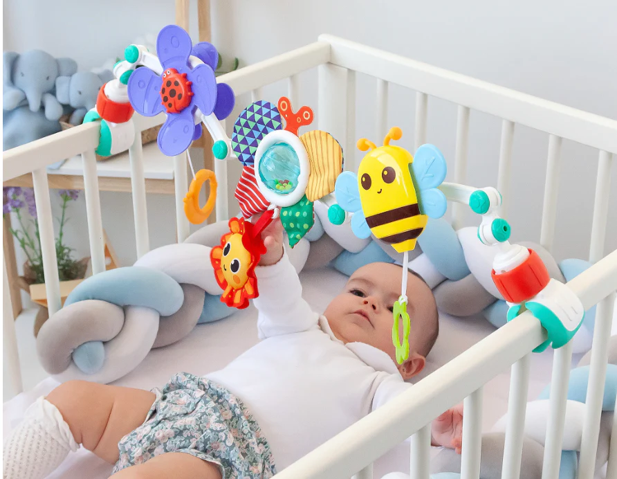 Il tuo piccolo vorrà cercare di raggiungere tutto ciò che pende da lui. Un’ape, un fiore, una lumaca e una farfalla, ognuna con 1 funzione: suono di carta croccante, un’altra svola le sue ali, una palla rotante con palline all’interno, e se riesce a tirare la lumaca, il fiore girerà senza sosta.Ha anche dentitori con i quali può alleviare il suo disagio di dentizione, è anche molto facile da montare e smontare, grazie alle sue pinzette sui lati per agganciarlo alla culla, sul passeggino, sulla sdraietta e anche sul seggiolone, e ha diversi punti per modellarlo come ne hai più bisogno, più in alto, più in basso, più aperto o più chiuso. · È raccomandato per +0 mesi. ·