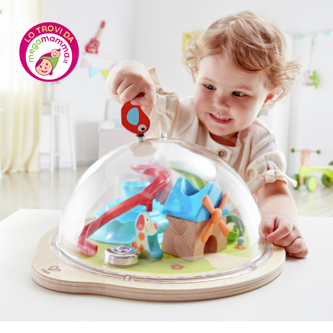 Avventura nella Valle del Sole Il lavoro di Lily l’uccellino è svegliare la Valle del sole! Usa il magnete contenuto nel becco per far cadere le perline negli scivoli e in altri elementi presenti sotto la cupola