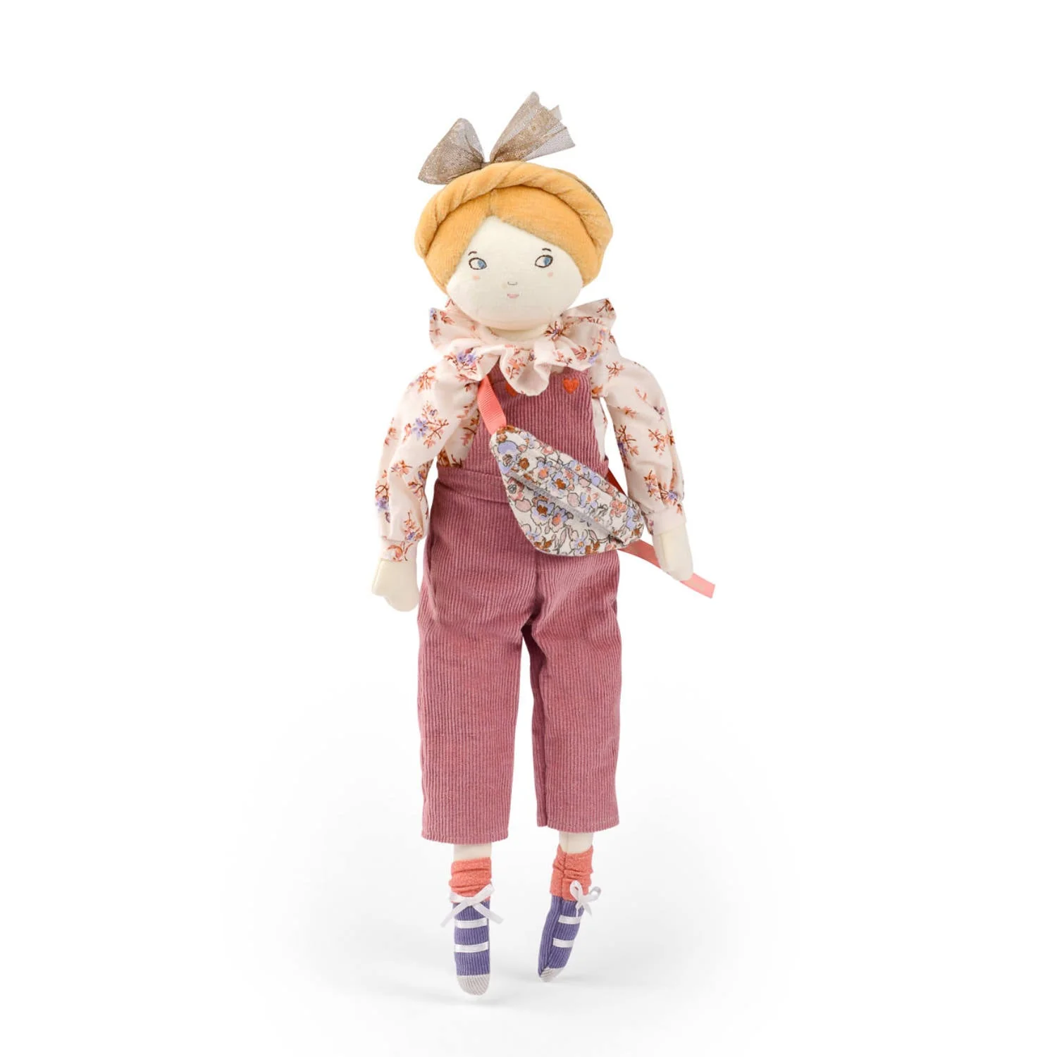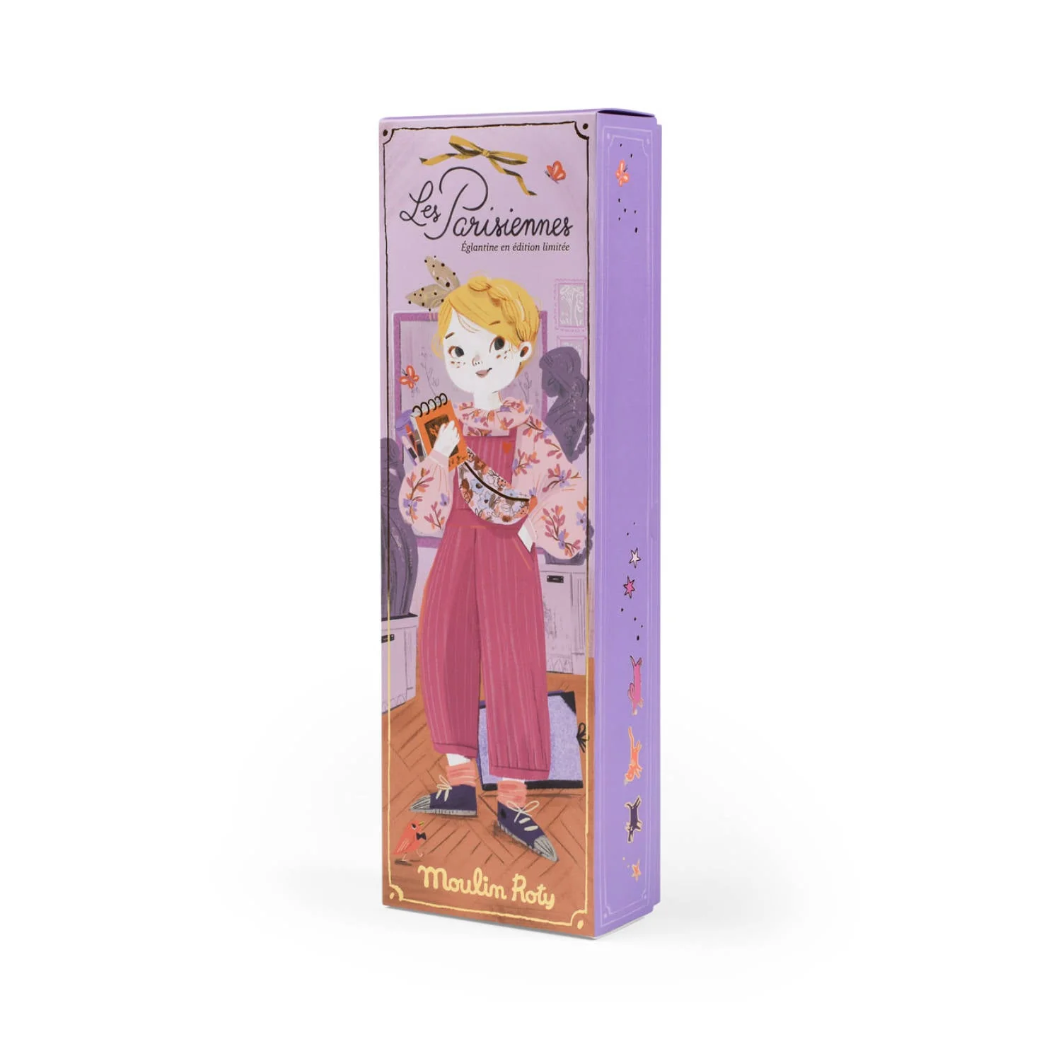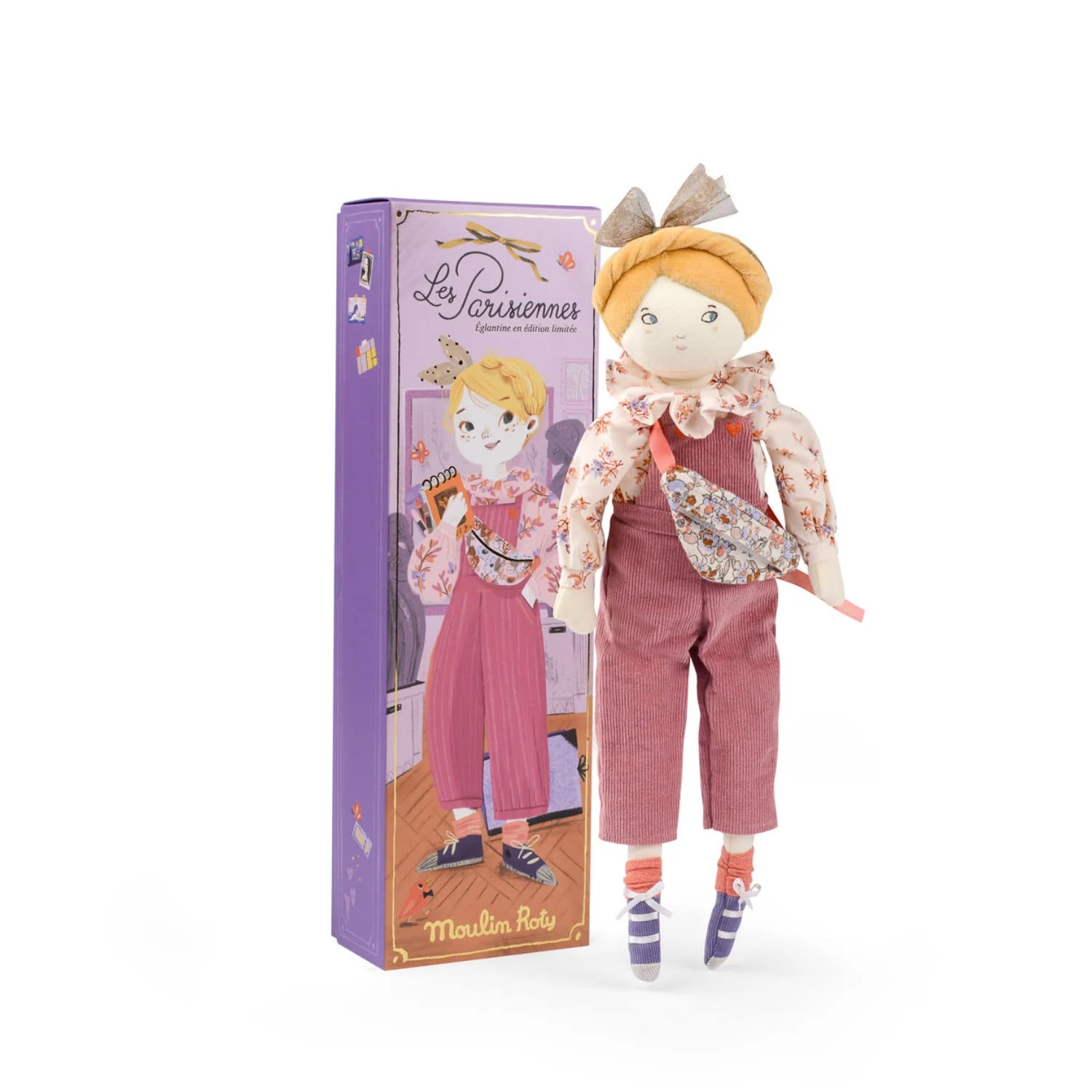 Églantine in edizione limitata! Grande colletto fiorito, tuta di velluto e bandana abbinata. Bambola della collezione Les Parisiennes dal dolce viso ricamato e serigrafato, presentata in un cofanetto illustrato da Lucille Michieli.