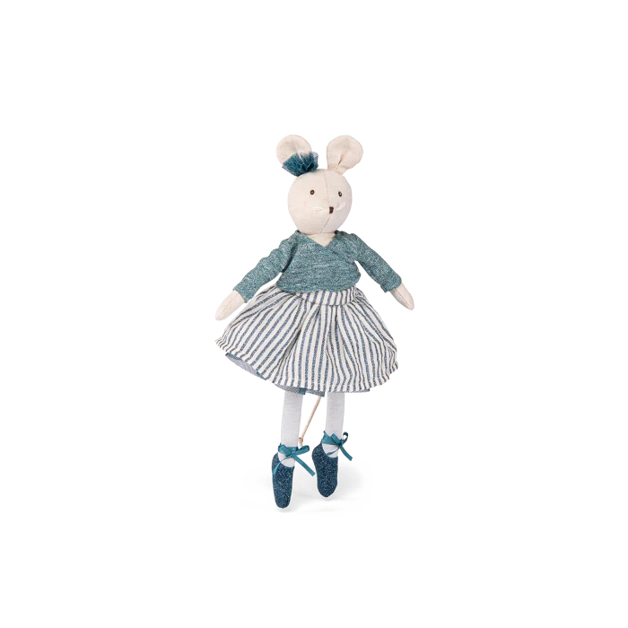 La piccola topina Charlotte, in chambray, con un dolce musetto ricamato e le guance delicatamente incipriate, vestita tutta di blu, indossa l’abito completo della ballerina. L’amica ideale con cui condividere momenti magici.