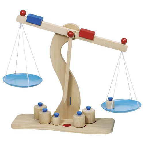 Realizzata in legno massello, questa bilancia da contrappeso è dotata di piatti in metallo e include pesi in legno. Dimensioni 30x10x31 cm. Adatto a bambini dai 3 anni in su. Garanzia – 1 anno