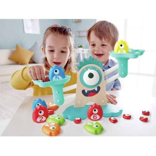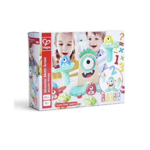 Impara a misurare e a confrontare i pesi mentre scopri i concetti basilari della matematica e divertiti assieme alle simpatiche creature colorate. Osserva i piccoli mostriciattoli mentre affrontano sfide di logica come l’addizione e la sottrazione. Questa bilancia è più di un semplice strumento di apprendimento. Può essere usata anche per altri giochi: puoi immaginare, ad esempio, di essere in un negozio o in un panificio a tema mostruoso e pesare i prodotti cercando l’equilibrio tra i due piatti.