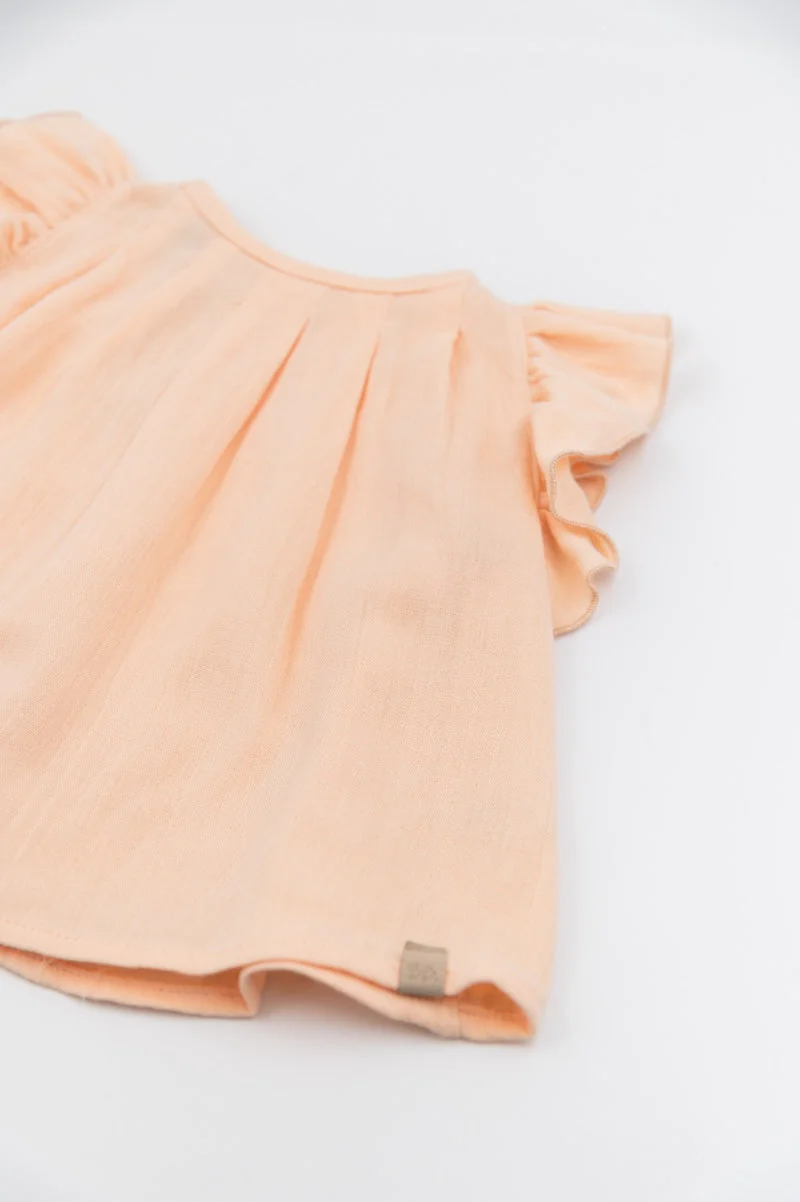 Le morbide rouches sulle maniche donano un tocco romantico, mentre il tessuto realizzato a partire dal bambù e cotone naturale assicura traspirabilità e comfort sulla pelle.