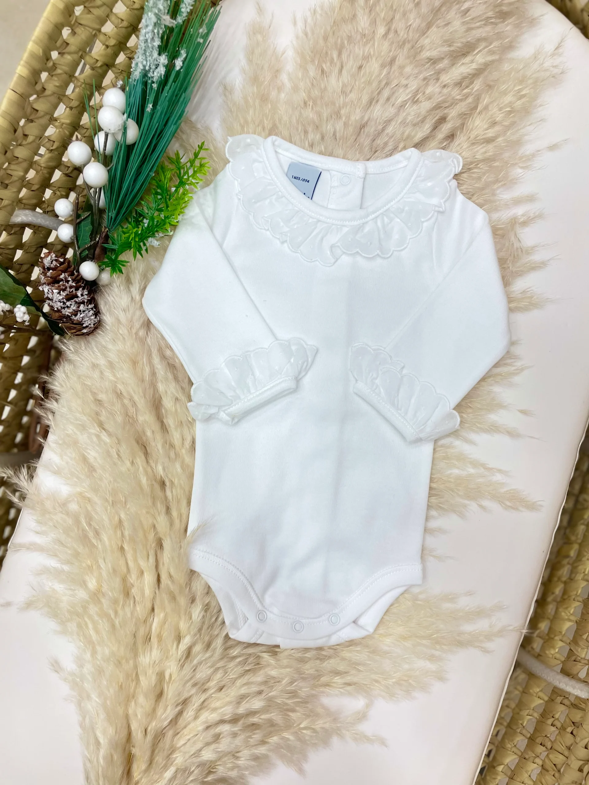 Body banidu in cado cotone, manica lunga con collo in pizzo Apertura sul retro e nella parte inferiore.