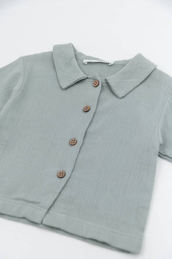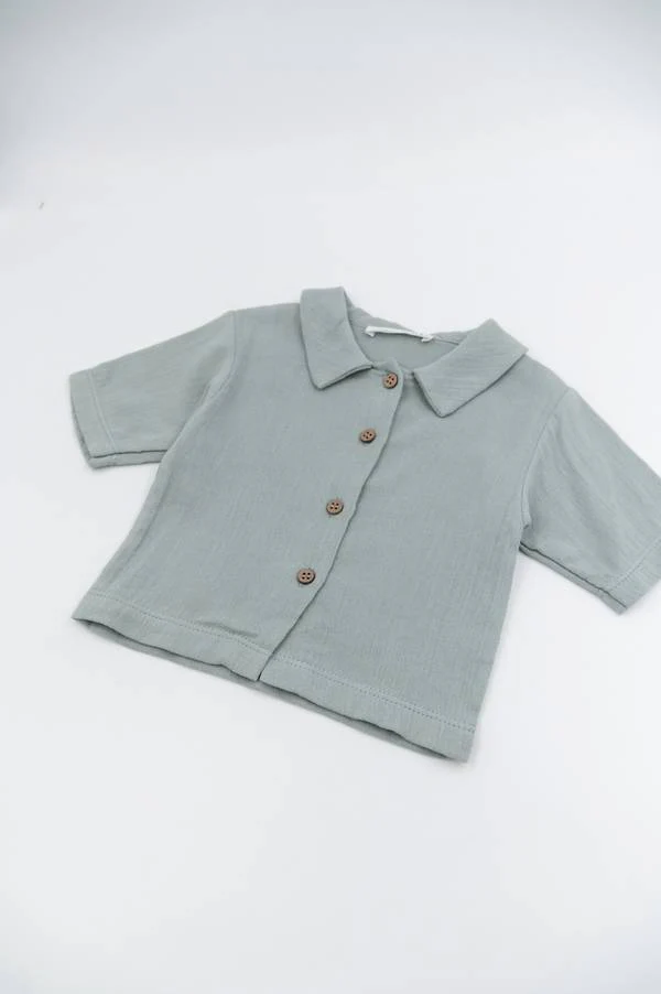 Un capo fresco e versatile, perfetto per la stagione estiva. Questa camicia a maniche corte realizzata a partire dal bambù e cotone naturale, offre una sensazione di morbidezza e freschezza sulla pelle, mantenendo il bambino sempre a suo agio.