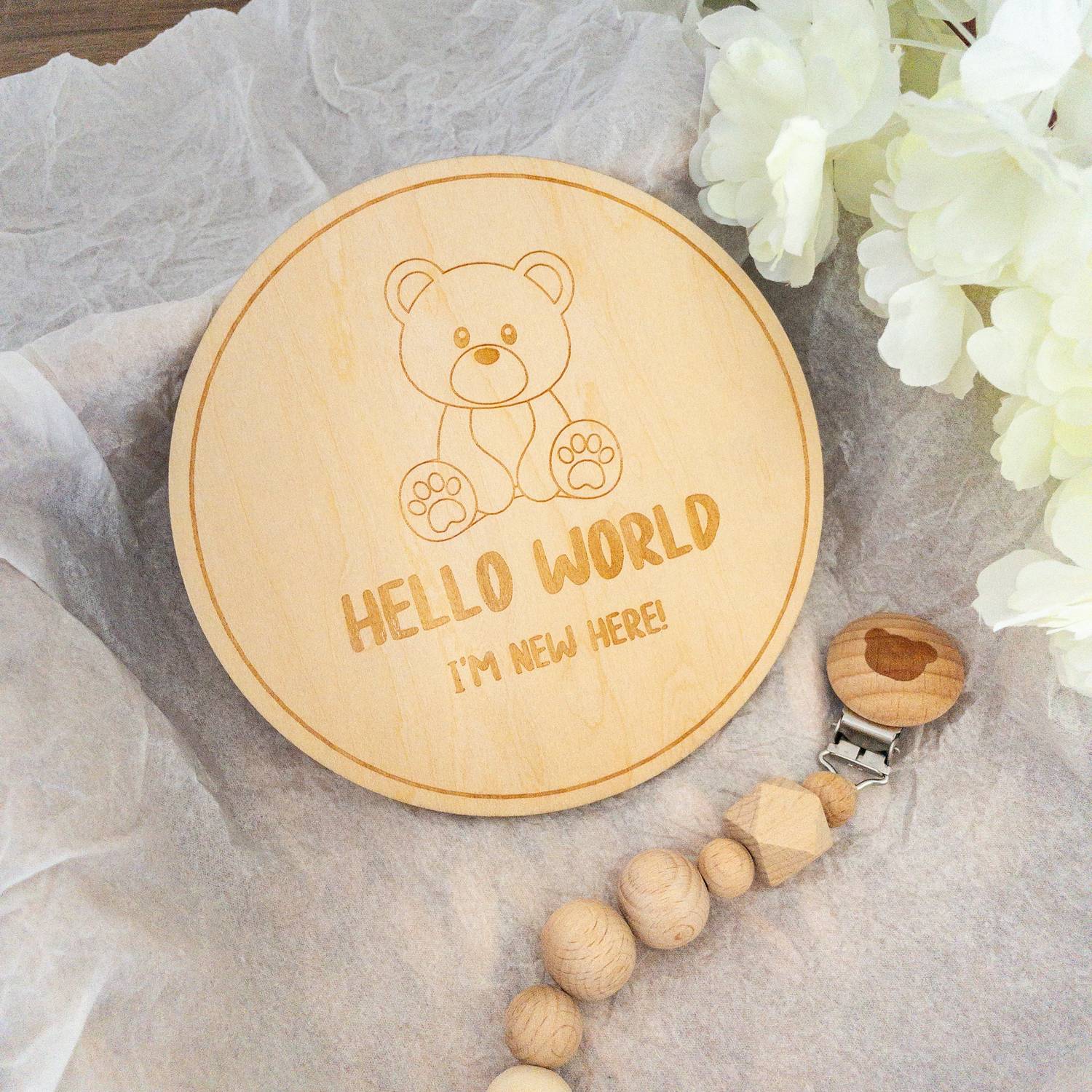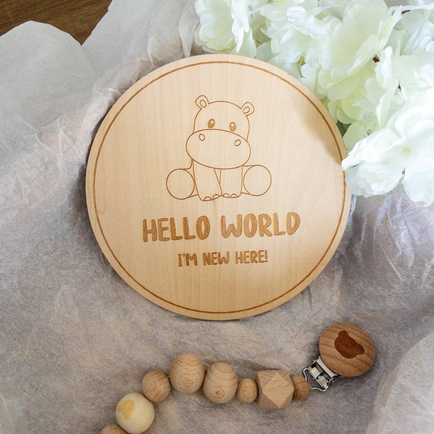 Card in legno incisa con il nostro design unico, è disponibile con un tenero orsetto o ippopotamo.