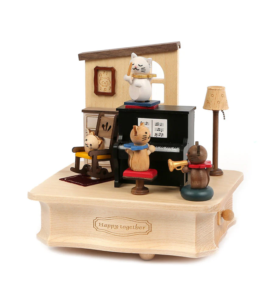 Carillon Cat Play Piano Wooderful life
