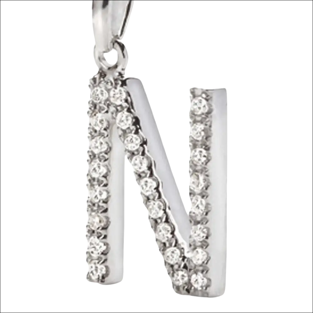 Ciondolo lettera N oro bianco e zirconi di Ambrosia ref. ACZ 051, fa parte della collezione Joy Letters.
