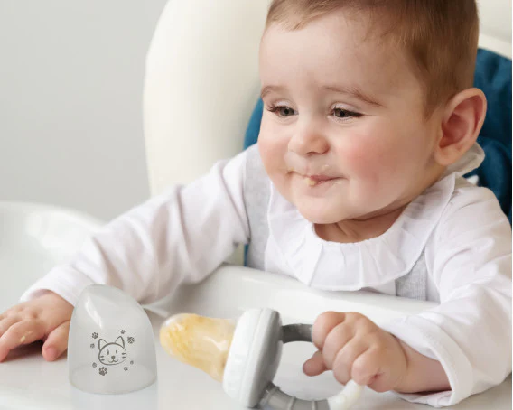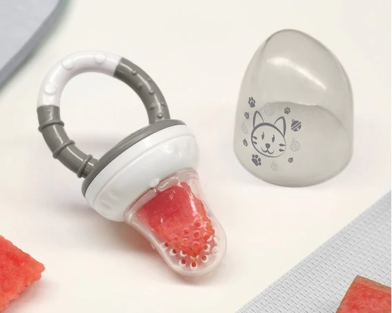 È uno strumento indispensabile per introdurre nuovi sapori e consistenze nella dieta del bambino. Nessun pericolo di annegamento in quanto il bambino morderà e si nutrirà autonomamente, estraendo il succo, ma trattenendo i pezzi all’interno della rete.Include un cappuccio protettivo per una migliore conservazione e trasporto.