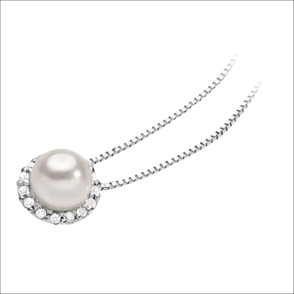 Collana oro bianco con ciondolo perla e zirconi – ref. AGP 028 di AMBROSIA
