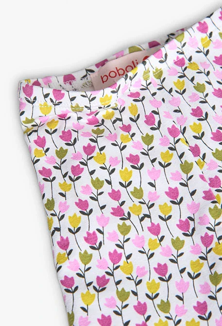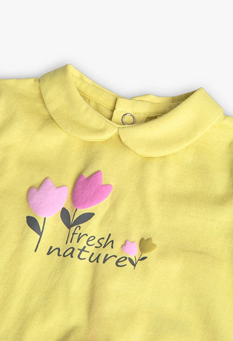 Completino formato da maglietta, di colore giallo con un design floreale, e pantaloni con stampa floreale nei toni del rosa e del giallo. Realizzato in un tessuto morbido e confortevole, è perfetto per l’uso quotidiano.