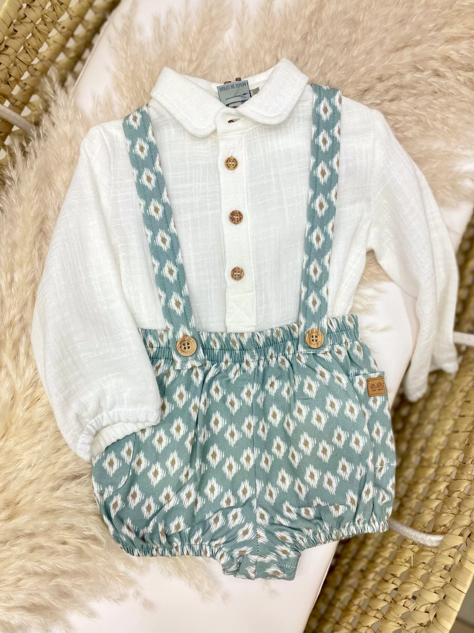 jose varone ti presenta questo fantastico completo in cotone composto da camicia maniche lunghe e salopette… Ideale per un’outfit unico e particolare