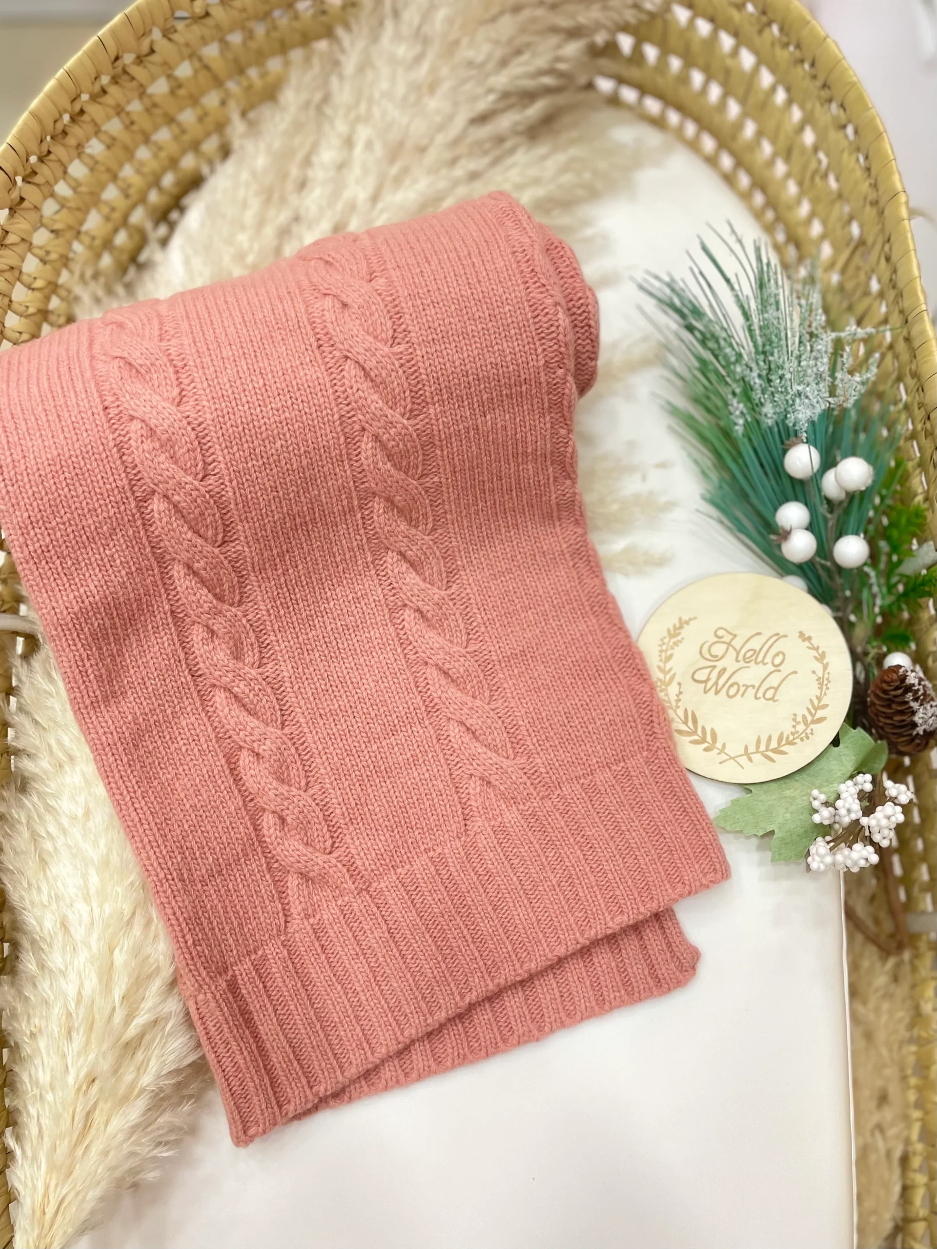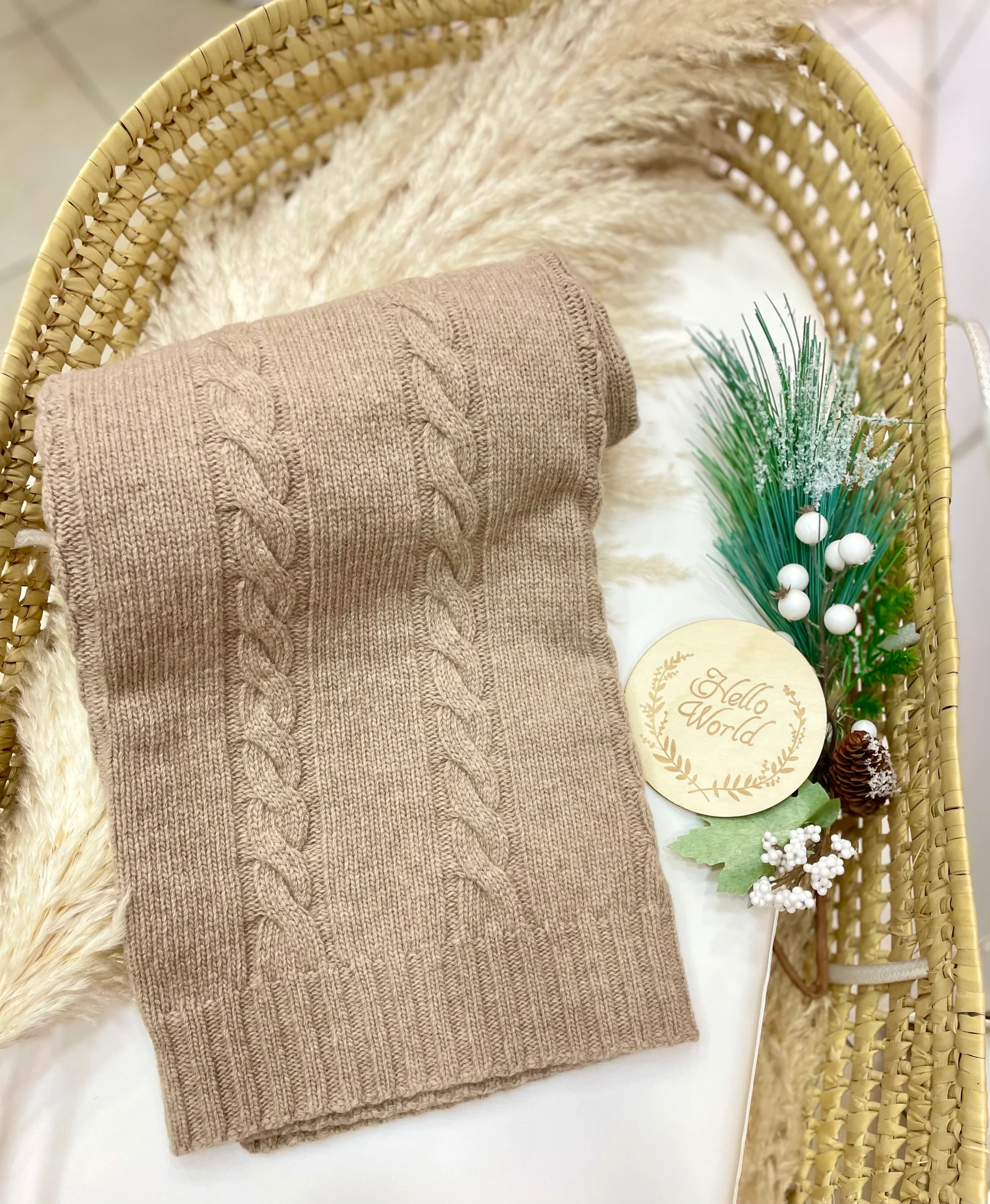 Copertina Wedoble in 100% lana con raffinato motivo a treccia. Un capo elegante e caldo, ideale per proteggere il tuo bambino durante i mesi più freschi, garantendo comfort e morbidezza sulla pelle.