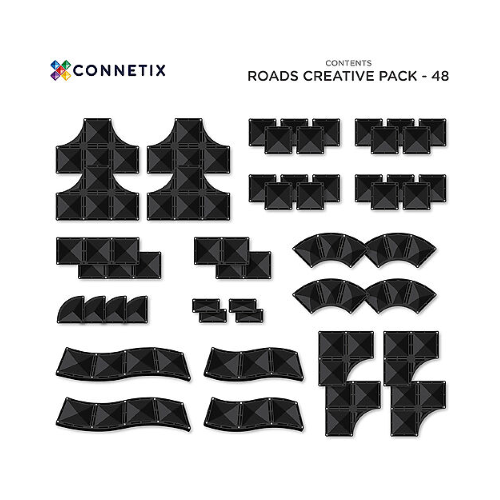 Costruzioni magnetiche 48 Pezzi – Roads – Nero – 100% Plastica ABS Atossica – Apprendimento STEM! Connetix