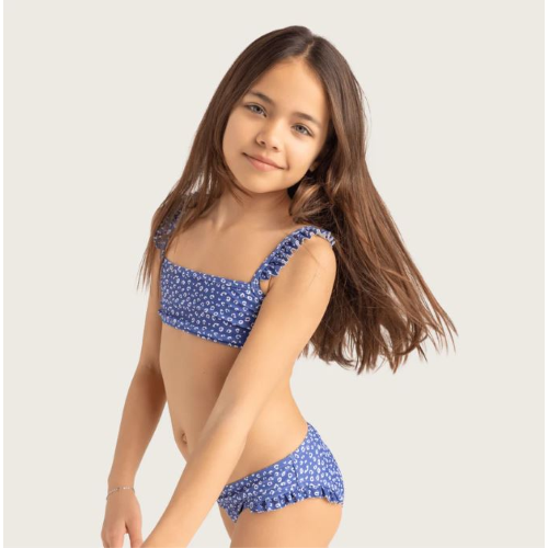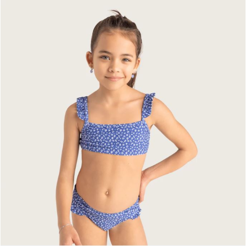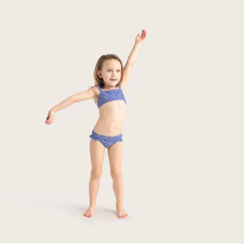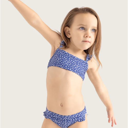 Costume da bagno due pezzi bambina UV stampa leopardata blu con protezione UPF50+ Swim Essential
