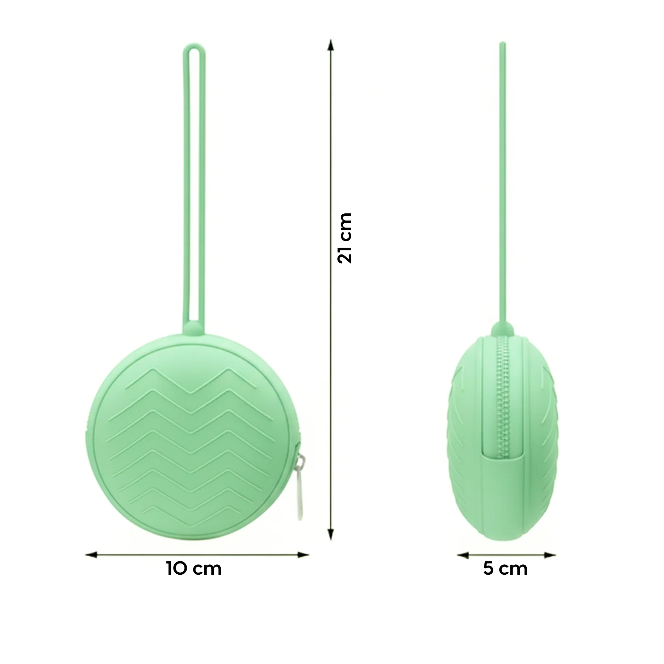 Custodia porta ciuccio in silicone alimentare, un pratico astuccio con zip che può contenere anche la catenella portaciuccio e un massaggiagengive.