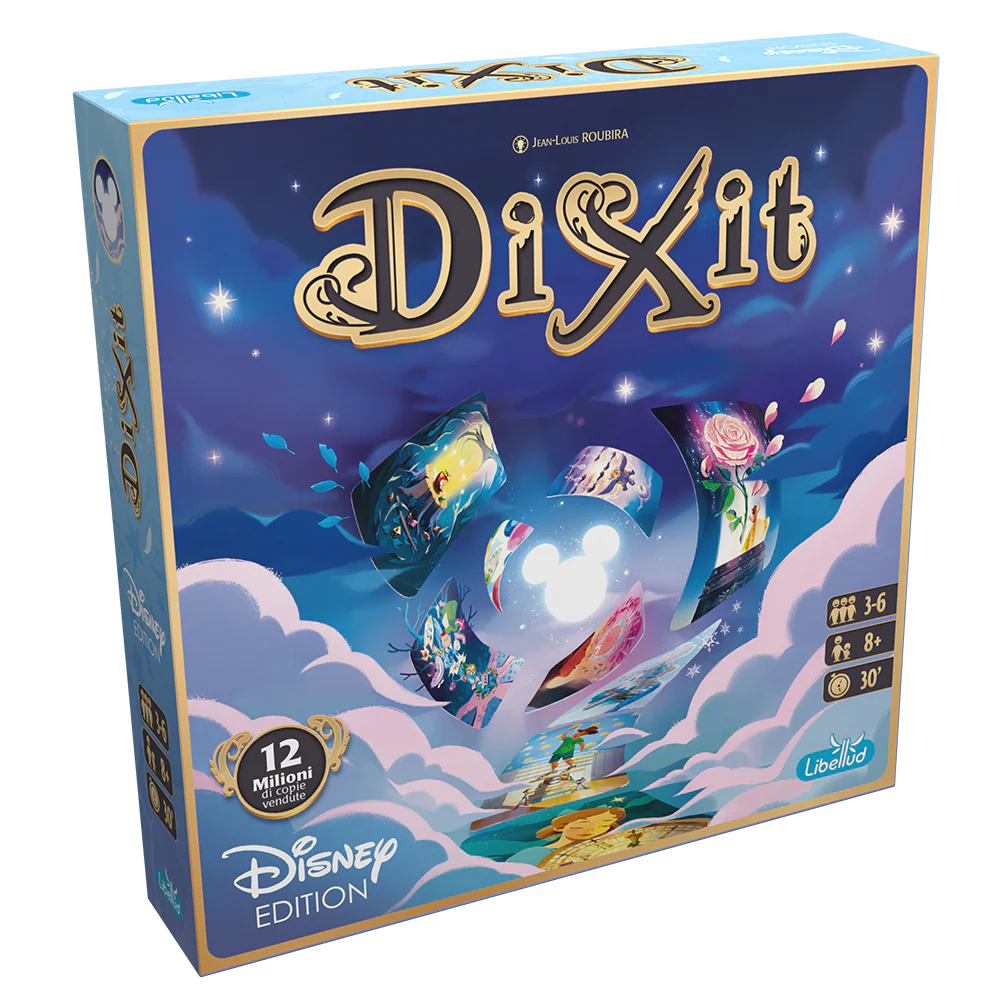 Caratterizzato da incantevoli opere d’arte dell’illustratrice Natalie Dombois, l’edizione Disney di Dixit include 84 carte, ciascuna basata su uno degli 84 film Disney e Pixar.