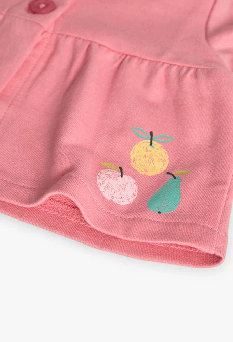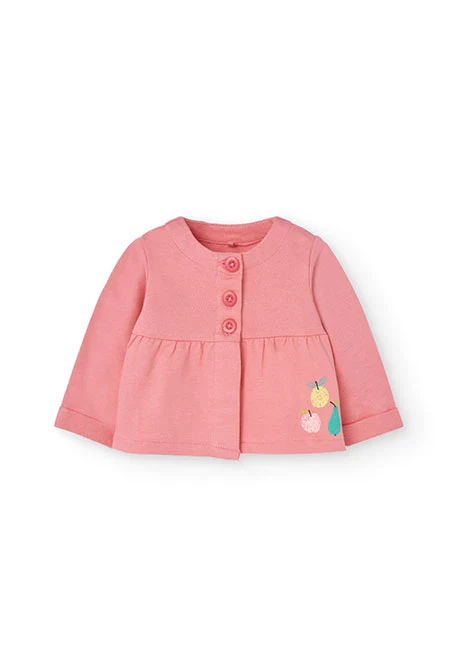 Giacca felpata in un incantevole colore rosa, realizzata in un materiale morbido e confortevole, è perfetta per mantenere le bimbe al caldo durante i mesi più freschi. Presenta un design semplice con bottoni sul davanti, facilitando l’uso. Un bel dettaglio di frutta sul lato aggiunge un tocco divertente.
