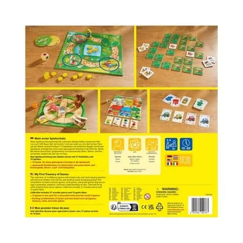 Haba – Il mio primo tesoro di giochi è una grande raccolta dei giochi da tavolo più belli per bambini dai 3 anni in su.
