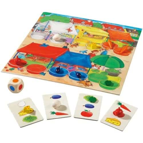 Caratteristiche tecniche Marchio: Haba Autore: Markus Nikisch Illustrazioni: Roger de Klerk Età: 3 anni + Contenuto: 3 cavalli, 3 mucche, 3 maiali, 3 pecore, 2 mele rosse, 2 prugne, 2 uova, 2 spicchi di formaggio, 2 insalate, 2 carote, 1 contadino, 2 dadi, 9 stelle, 1 luna 2 tabelloni di gioco double-face 32 carte da gioco 32 carte promemoria 4 liste della spesa 3 dischi fattoria istruzioni in italiano Numero giocatori: 2 – 6 Durata del gioco: 10 – 15 minuti Materiale: Legno e Cartoncino Peso della confezione: 1.768 g Avvertenze: Non adatto a bambini di età inferiore a 3…
