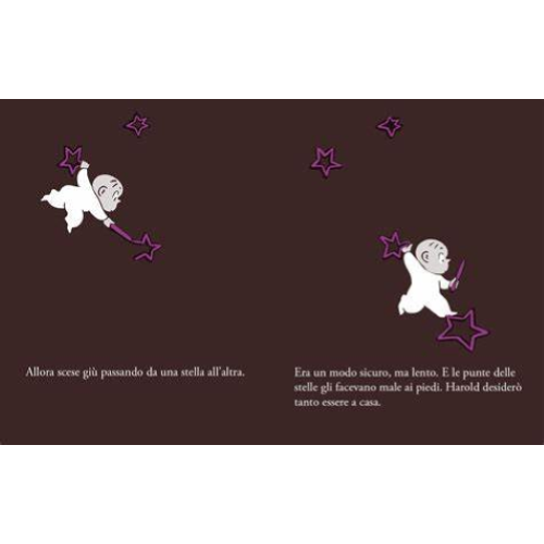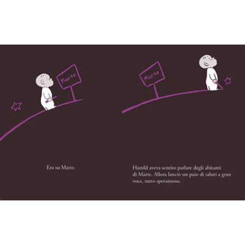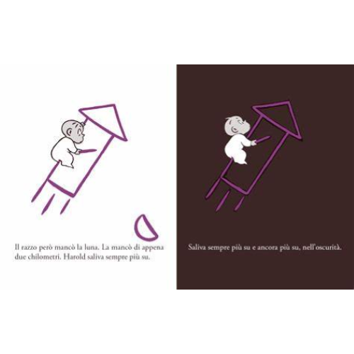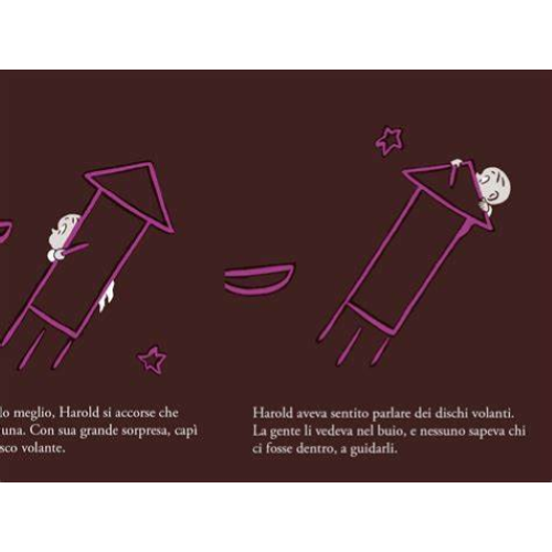 In questo terzo libro, Crockett Johnson conferma la sua abilità nel rinnovare continuamente, con soluzioni geniali e inaspettate, il gioco creativo che sta alla base delle storie di Harold. Una nuova avventura nel segno del potere creativo dell’immaginazione, questa volta sullo sfondo della fascinazione per le esplorazioni spaziali. «Nuove esilaranti avventure del sempre pieno di risorse Harold» – Library Journal A Harold stavolta la Terra non basta: la sua fantasia lo fa partire per lo spazio, a cavallo di un razzo. Tutto ha inizio quando Harold si sveglia nel cuore della notte e, illuminato dall’immancabile luna, va a prendersi un…