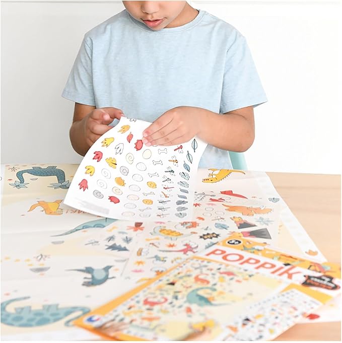 Posiziona i fantastici adesivi dinosauri in modo creativo a piacimento o utilizza il modello. Gli adesivi riutilizzabili possono essere facilmente rimossi dal poster e riposizionati.