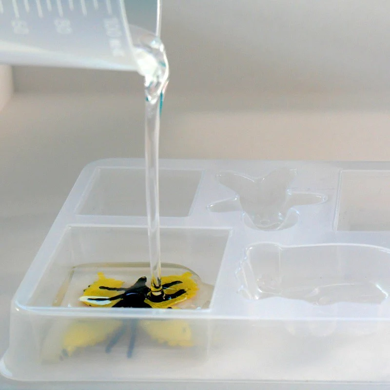 La manipolazione del prodotto è semplice e non pericolosa per i bambini (in quanto non utilizza resina epossidica). Questo kit è composto da due soluzioni che polimerizzano e sono assolutamente sicure da maneggiare per i bambini. Si raccomanda di seguire attentamente le istruzioni nel manuale d’uso.