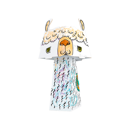 Modello in cartone CUBE HEAD da piegare e colorare "Lama". Può essere assemblato senza l’uso di forbici o colla, seguendo le istruzioni nella confezione. Realizzato in cartone ondulato laminato con carta bianca. Il cartone assorbe bene l’umidità, non si piega e non perde. Adatto per essere colorato con pastelli, pennarelli, pennarelli e tempere.
