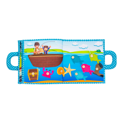 Il libretto tessile interattivo fatto a mano Piqipi-Fantek è un cosiddetto libro silenzioso con cui i bambini giocano e imparano molto. Ogni pagina del libro contiene un gioco unico in cui il bambino impara numeri, colori, forme e molto altro.