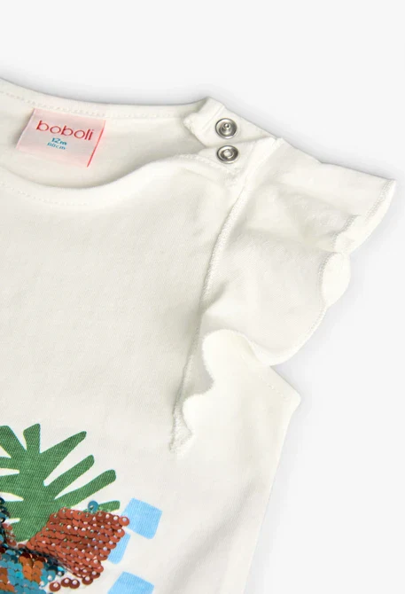Maglietta ideale per i mesi caldi, il suo colore bianco la rende versatile e facile da abbinare. Disponibile nelle taglie da 4 anni a 8 anni. 100% Cotone