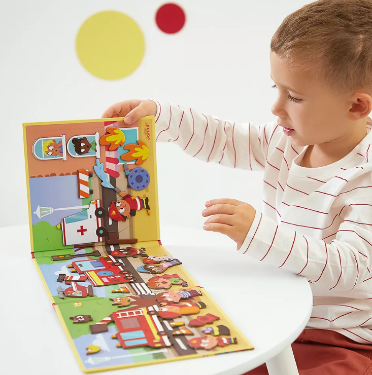 Un gattino da salvare, un incendio da spegnere, una piccola ferita da curare… Fortunatamente, i vigili del fuoco sono pronti ad affrontare la situazione! Questo gioco magnetico farà la gioia dei bambini dai 3 anni in su, che vestiranno i panni di piccoli pompieri. Il gioco è composto da uno sfondo illustrato e 30 calamite […]