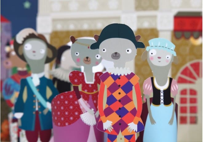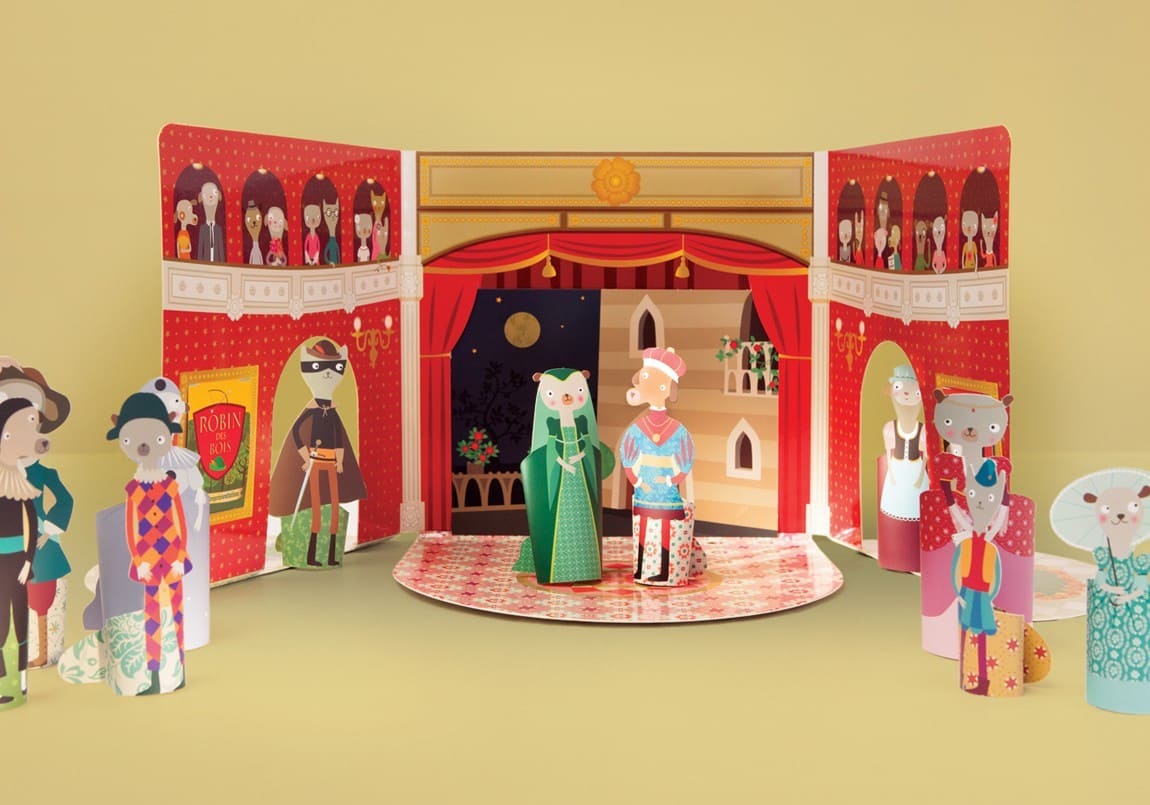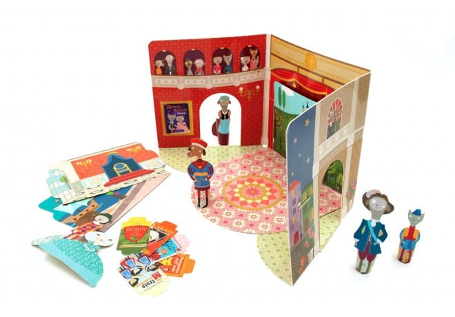 Il teatro in cartone è pieghevole, e può essere portato facilmente ovunque. L’intero design del gioco è stato ideato da Mini Labo.