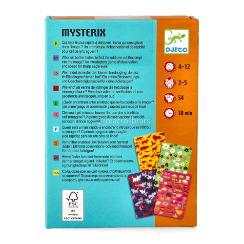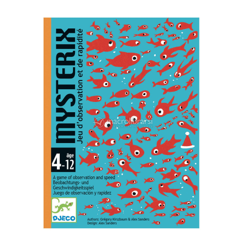 Gioco di osservazione e velocità. I giocatori devono individuare, il più rapidamente possibile, l’intruso fra i tanti disegni presenti su ciascuna carta. In tutto il mondo Djeco è sinonimo di qualità e bellezza: i suoi giocattoli sono caratterizzati da uno stile inconfondibile che li rende riconoscibili fra tutti. I giochi di carte, in particolare, sono fra le linee di prodotto più note di Djeco: con le loro scatole robuste e compatte, sono facili da sistemare ordinatamente su uno scaffale o in una libreria e sono comodissimi da trasportare per giocare ovunque.
