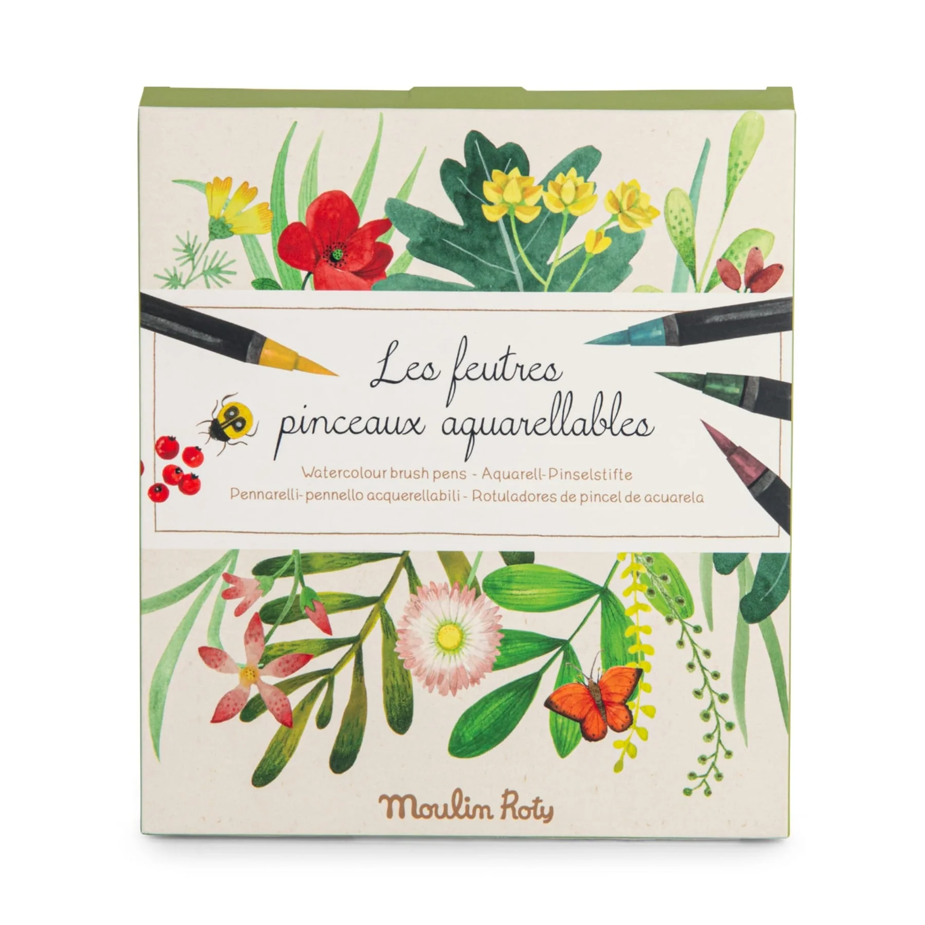 Scatola di 12 pennarelli acquerellabili a punta morbida e 1 pennello con serbatoio d’acqua. Possono essere utilizzati da soli o con un pennello con serbatoio d’acqua per giocare con i colori all’infinito.Disegna con i tuoi pennarelli-pennello poi, subito dopo, ripassa il disegno con il pennello a serbatoio d’acqua per ottenere un effetto acquerello.