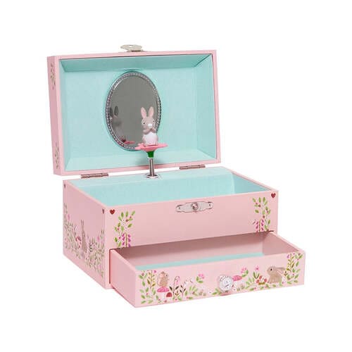 Portagioie musicale disegnato dall’illustratrice Rebecca Jones Kleur. Le bimbe adoreranno tenere i propri gioielli in questo box completo di specchio interno.