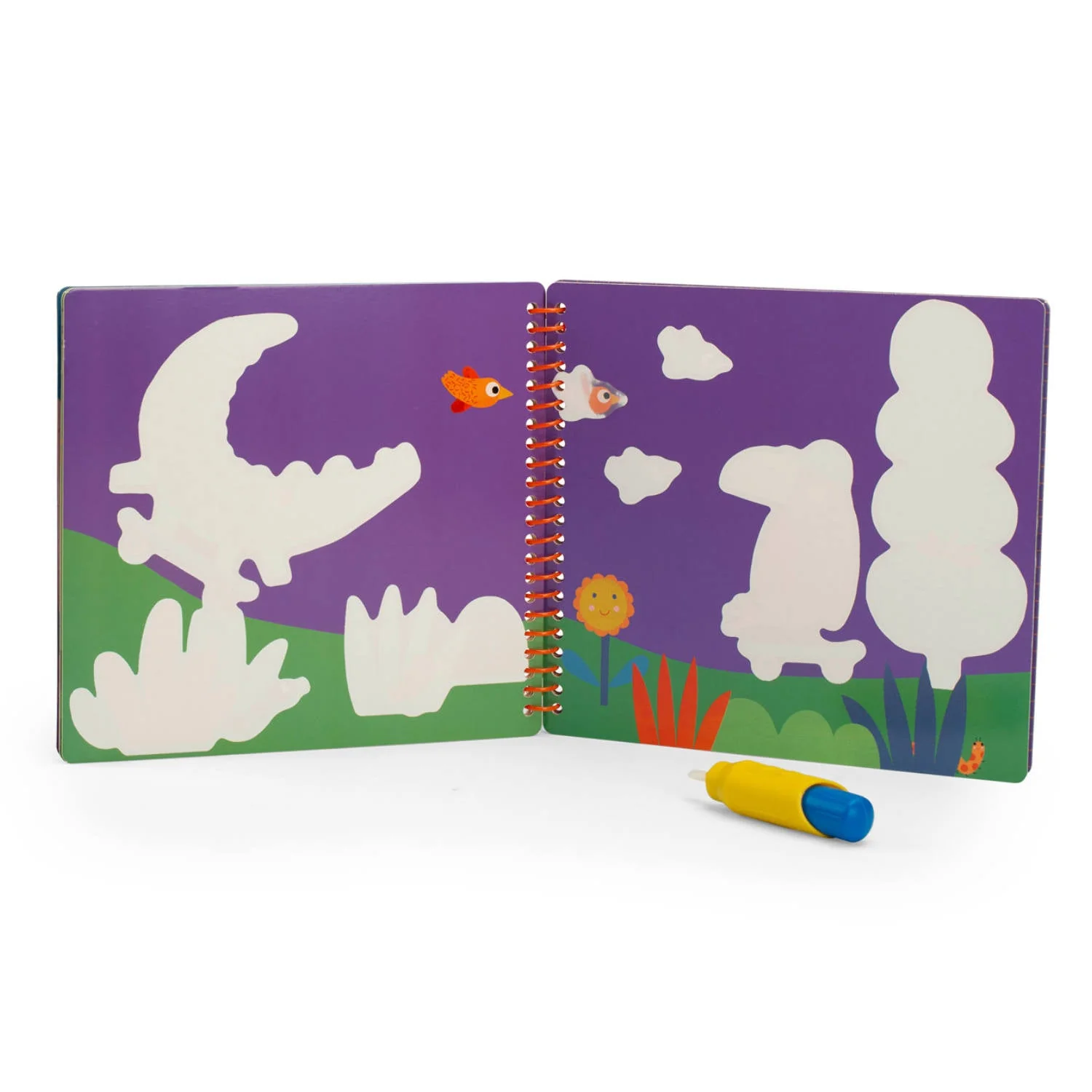 Usando un pennello magico con serbatoio d’acqua, dipingi le aree bianche su ogni pagina per apparire magicamente le bellissime illustrazioni della collezione les Toupitis! Riutilizzabile, i disegni appaiono e poi scompaiono una volta asciutti!