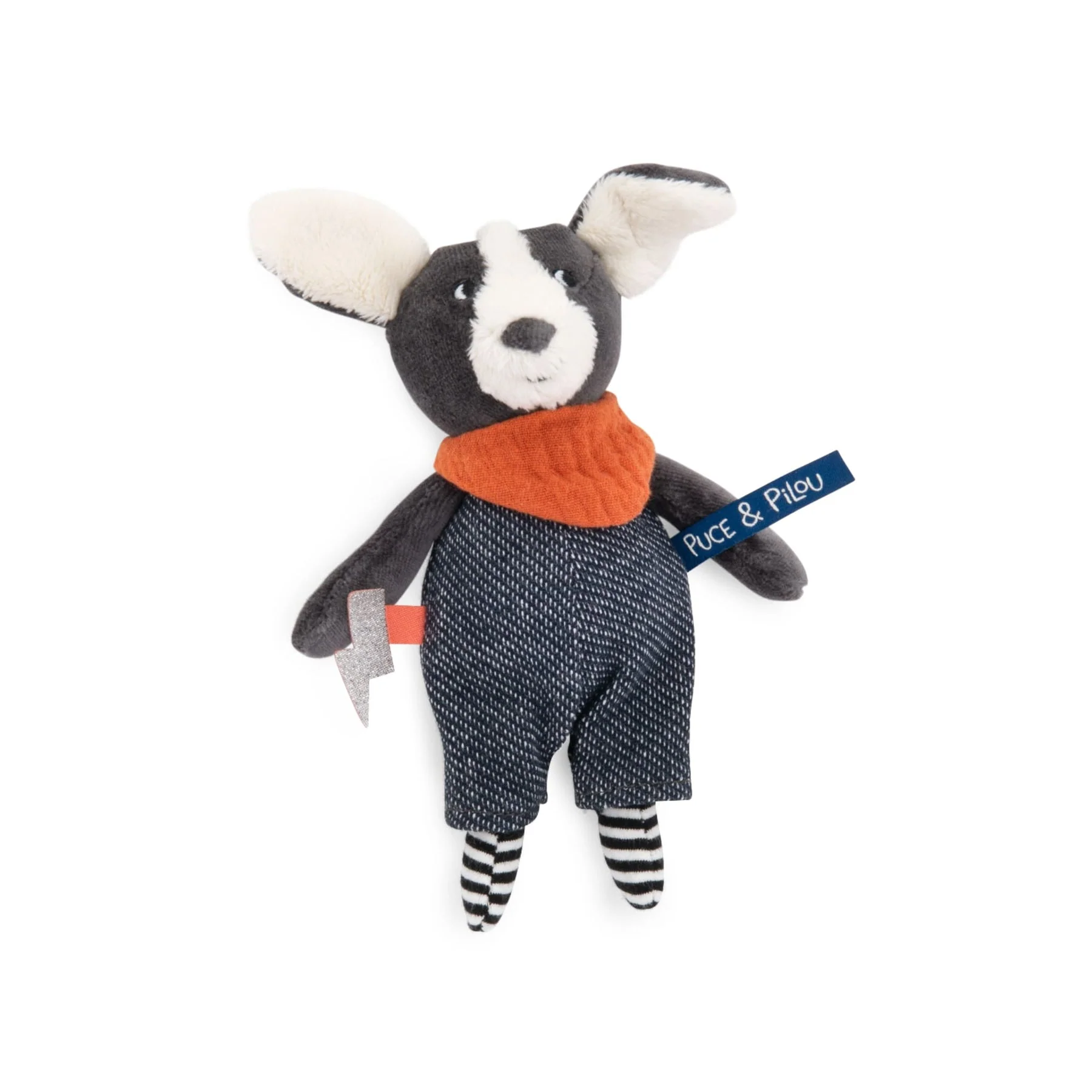 Che aspetto tenero, Puce! Vestito con la sua salopette e la sua bandana, aspetta solo le coccole. Piccolo e pratico, si porta ovunque.