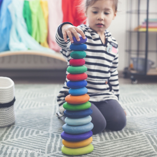 Costruire, impilare e trovare il giusto equilibrio con queste forme di pietra organiche e rotonde è impegnativo e divertente. Arricchisci piccoli mondi di tua creazione: aggiungi un fiume (sciarpa di seta), crea una grotta, presenta un paesaggio pietroso o costruisci un tumulo. Perfetto in combinazione con i nostri Elementi: Fuoco, Onde d’Acqua e Terra, gli altri peperoncini e Funghi Arcobaleno. 4 pezzi nei toni del rosso. Materiali: legno di tiglio, colorante atossico a base d’acqua. Dimensioni: H = 2,5 cm, L = 6-12 cm.