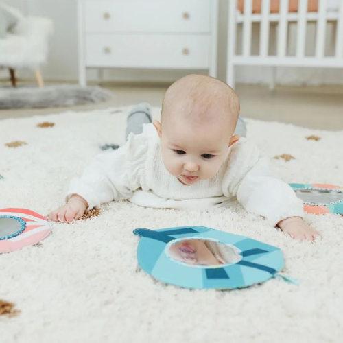 Sapevi che intorno ai 6 mesi i bambini iniziano a sorprendersi del loro riflesso e iniziano persino a ridere? Nei mesi successivi, i bambini inizieranno a prendere consapevolezza di sé e dei propri movimenti in quella che è nota come "fase dello specchio", quindi questo set di 3 specchi sensoriali può aiutarli a raggiungere le tappe fondamentali dello sviluppo cognitivo di questa nuova fase. Caratterizzati da design colorati ad alto contrasto, questi specchi sensoriali stimolano il senso della vista e, grazie alla carta frusciante all’interno, anche il senso dell’udito e del tatto. Facile da lavare, anche in lavatrice (anche se…