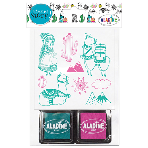 Timbri in gomma su schiuma con motivi di lama. Le immagini stampate possono essere colorate, ritagliate, completare l’ambientazione dell’intera storia. I timbri sono già codificati a colori per una facile consultazione e per impedire la miscelazione dei colori dai cuscinetti per timbri inclusi. La stampa può essere eseguita anche su tessuti, ceramica e altri materiali (polimeri, pasta da modellare). Il set di timbri contiene 9 timbri e 2 tamponi di inchiostro.