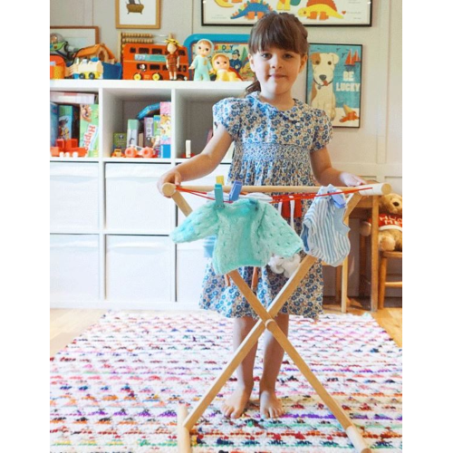 Questo stendibiancheria in legno dai colori vivaci, con le sue grosse mollette, è il luogo perfetto per asciugare i vestiti puliti. Se il tuo piccolo vuole occuparsi del bucato o magari del completo del suo orsacchiotto o della sua bambola, c’è tanto spazio libero! Scopri di più su cosa succede durante il lavaggio e sviluppa sessioni di gioco di ruolo realistiche e divertenti. Incoraggia il gioco di ruolo creativo e fantasioso. Realizzato con materiali di alta qualità e di provenienza responsabile. Conforme alle attuali norme di sicurezza europee. Composto da 9 pezzi da gioco.