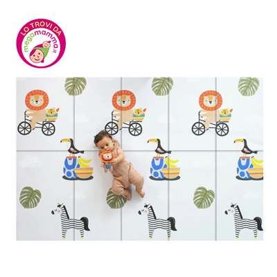 Questo spesso tappetino in schiuma imbottita protegge il bambino da pavimenti duri, freddi o caldi.