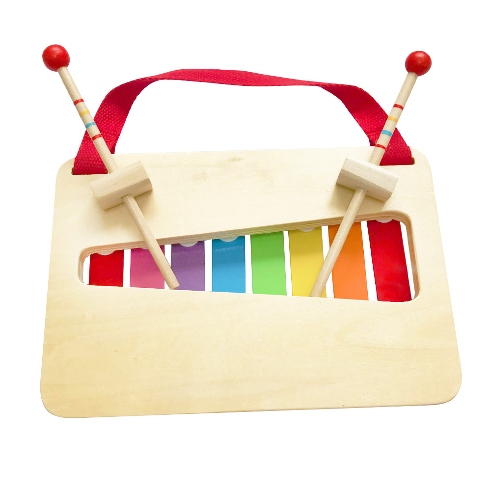 La superficie in legno offre stabilità e una migliore qualità del suono, mentre la cinghia allegata ti aiuta a trasportare il Metallophone,