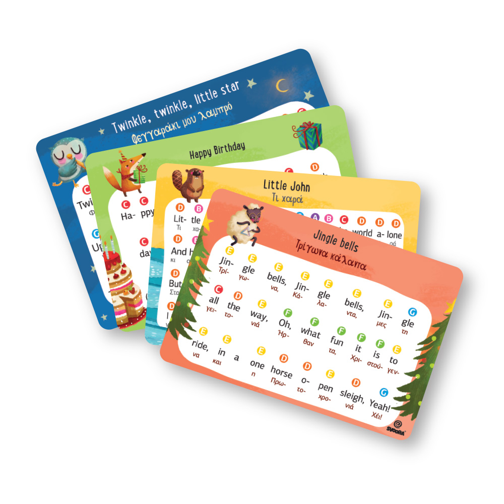 Le barre accordate con codice colore e le partiture incluse di 4 canzoni sono qui per