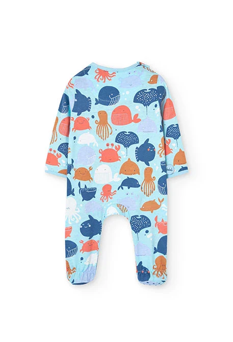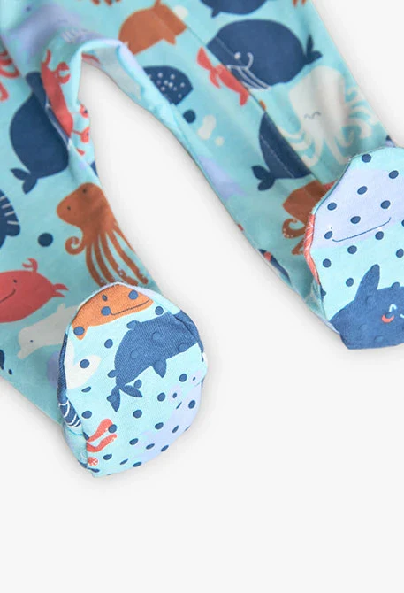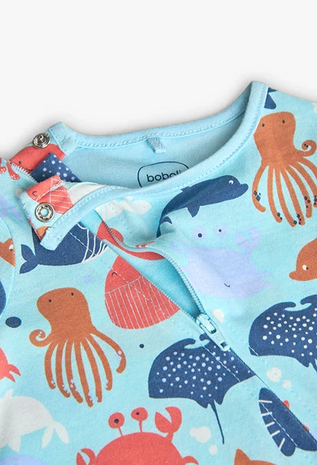 Questa tutina è un capo ideale per i più piccoli, realizzata in un materiale morbido, offre comfort e libertà di movimento. Il suo colore azzurro presenta una divertente stampa a tema marino. Con maniche lunghe e zip su tutta la lunghezza, è perfetto per l’uso quotidiano e facilitando il cambio.