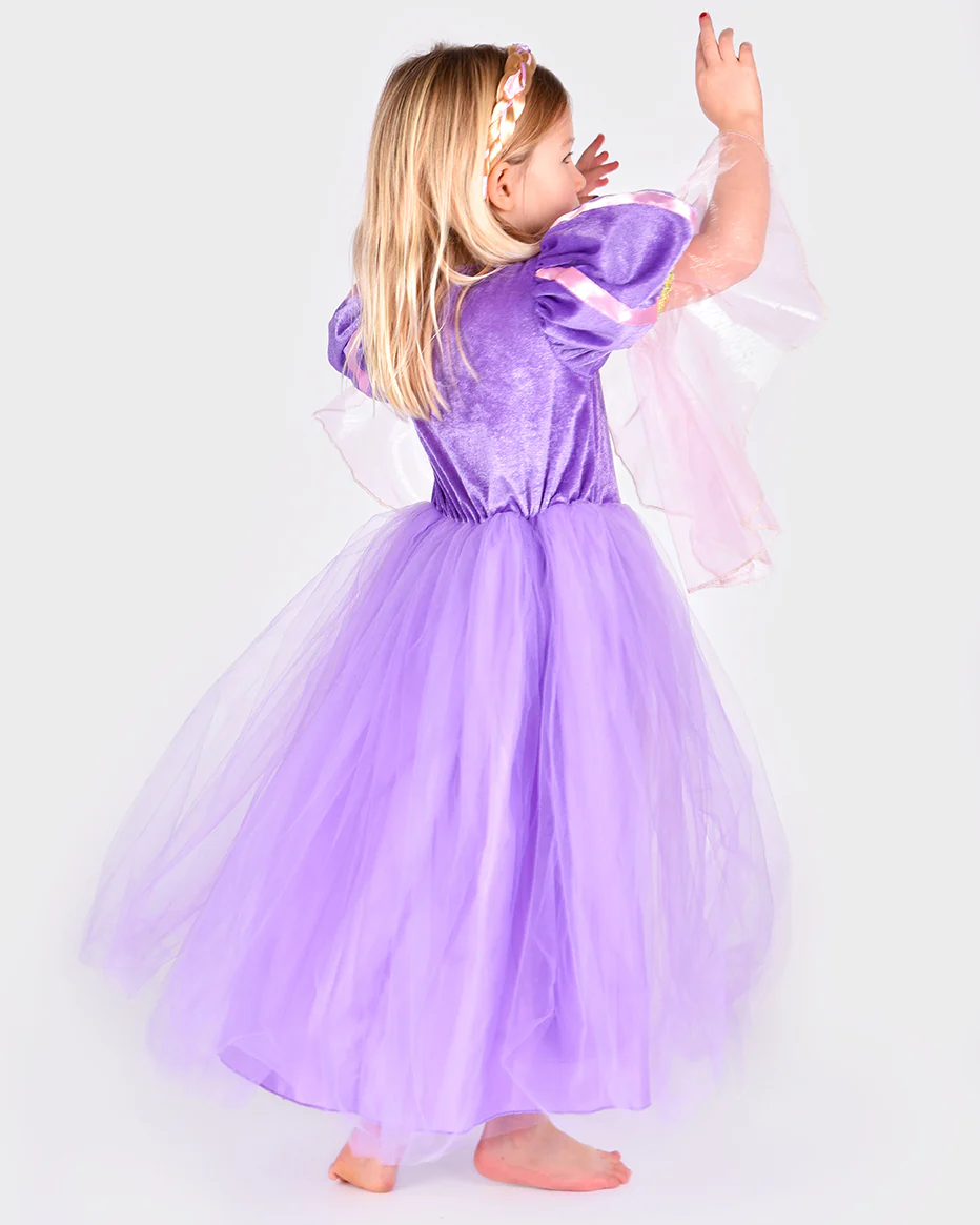 LOWA è il nostro magico abito viola che è una vera bomba da favola. L’abito ha un corpetto di velluto scintillante, con un corpetto di paillettes e dettagli in raso e organza. Maniche corte con ampie estremità in organza. Forse la cosa più magica di questo vestito, tuttavia, è l’ampia e soffice gonna in tulle a strati. Impossibile non girare e piroettare dentro! Inoltre, ottieni un diadema con una treccia molto lunga con dettagli floreali.