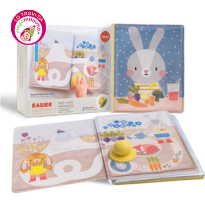 Scopri il nostro libro sull’acqua Peek-A-Boo, in cui le illustrazioni vivaci emergono man mano che il bambino scopre lo strato bianco nascosto di ogni pagina una volta a contatto con l’acqua, stimolando la sua immaginazione.